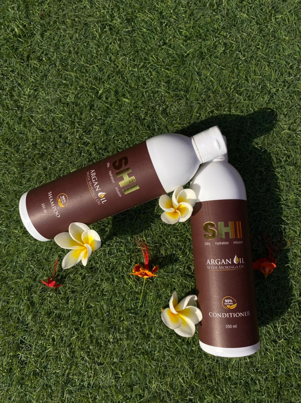 SHI isn't your average cosmetics brand. We're a revolution rooted in ancient wisdom, harnessing the power of nature's most potent ingredients – Argan Oil and Moringa Oil – to unlock your hair's true potential. We believe healthy hair is a journey, not a destination, and we're here to guide you every step of the way. Crafted with science-backed formulations and a deep respect for the environment, SHI offers luxurious, natural solutions that transform your tresses from ordinary to oh-so-shimmering. Join us on a quest for healthy, radiant hair that empowers you to shine from the inside out.